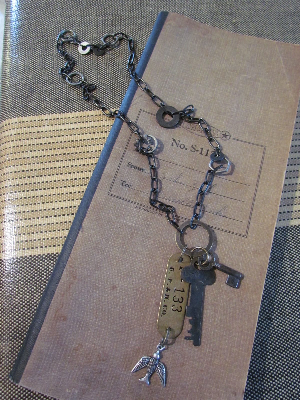 I have been very neglectful of my blog, busy looking for vintage junk for my booth at Odana Antiques in Madison WI. So now it's time to get busy and make more necklaces for my etsy shop. I just added this chain necklace with vintage keys, a bird charm, an old brass tag and several other findings throughout the chain. you can find it at guidoneetsy.etsy.com